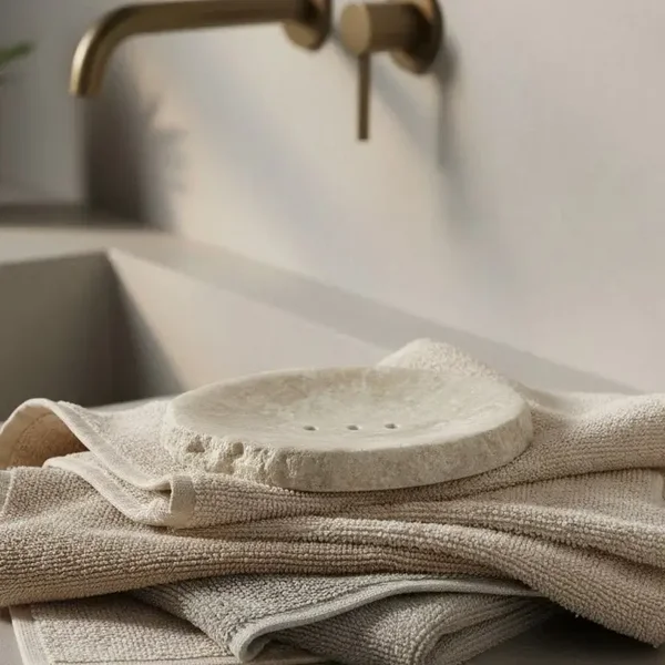 Dit stijlvolle zeepbakje van marmer is tijdloos, warm en perfect als luxe detail in je badkamer.