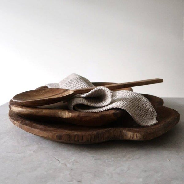 Houten schalen gemaakt van teak, iedere schaal heeft zijn eigen unieke vorm. Er zijn er dus géén twee hetzelfde en de maat kan daarom iets afwijken. De borden zijn geschikt om etenswaren op te serveren.